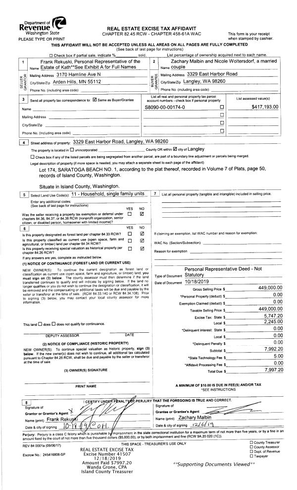 | Mailing Address: | 2281 EASTPOINT DRIVE LANGLEY, WA 98260-8032 | % Ownership: | 100.0000000000% |