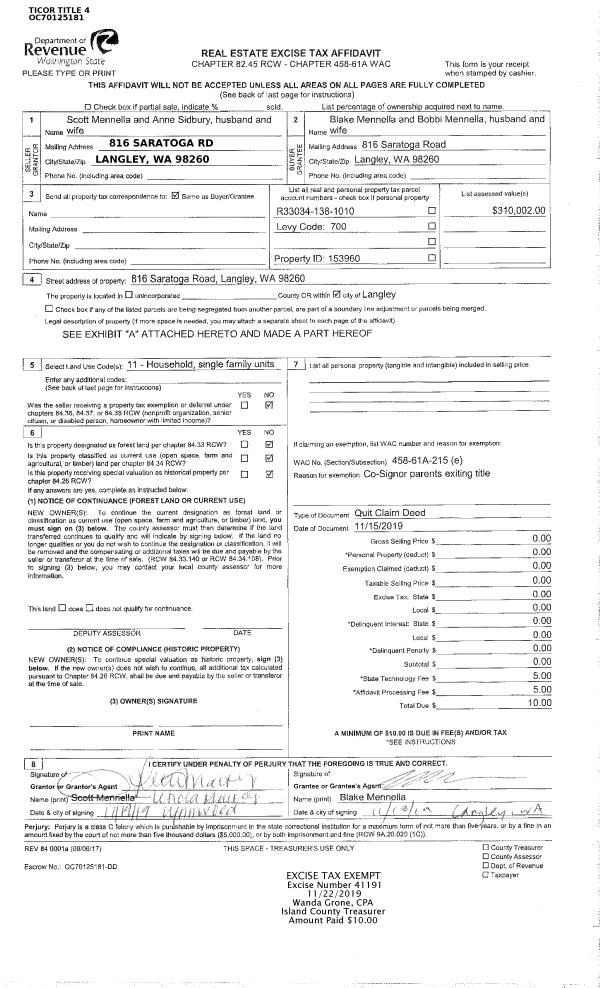 | Tax Area: | 710 - APPRAISER-S Whid Schl Dist, outside Langley, improved & 1 acre or less | Land Use Code | 11 |