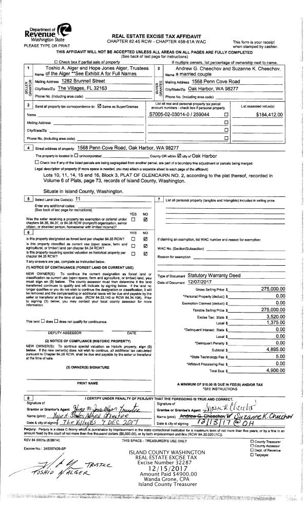 | Mailing Address: | FRANK F PULU 32945 SR 20 OAK HARBOR, WA 98277 | % Ownership: | 100.0000000000% |