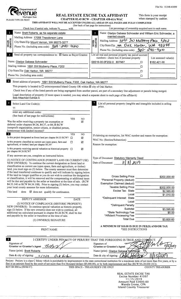 | Mailing Address: | NANCY G JELINEK 2249 WHIDBEY SHORES RD LANGLEY, WA 98260 | % Ownership: | 100.0000000000% |