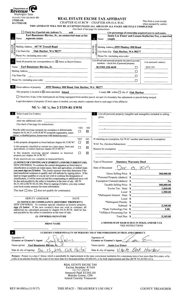 | Mailing Address: | 14888 SR 525 LANGLEY, WA 98260 | % Ownership: | 100.0000000000% |