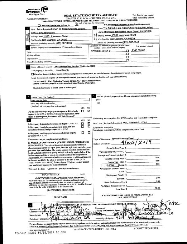 | Mailing Address: | 1759 WATKINS RD FREELAND, WA 98249 | % Ownership: | 100.0000000000% |