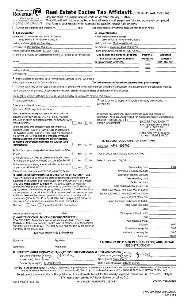 | Mailing Address: | TINA M CANUPP 1873 WATKINS RD FREELAND, WA 98249 | % Ownership: | 100.0000000000% |