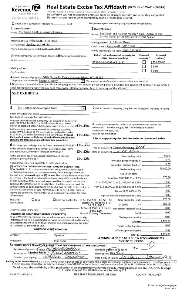| Mailing Address: | 5335 E HARBOR ROAD FREELAND, WA 98249 | % Ownership: | 100.0000000000% |