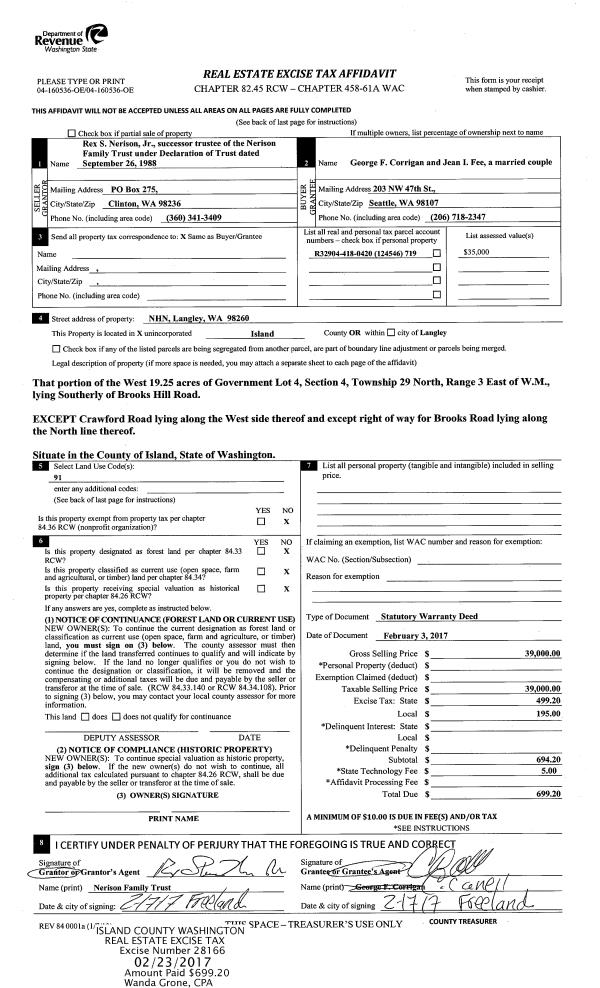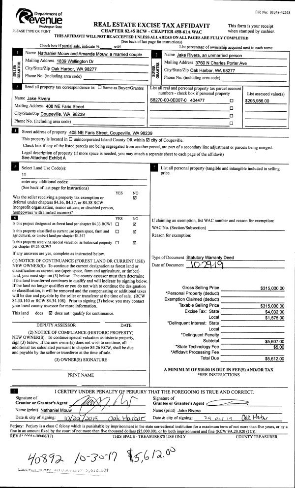 | 6 | 03/05/2005 | REC | Real Estate Contract | CULTUS BAY INC, | CULTUS BAY INC, | | | $250.00 | 50919 | 4127706 |