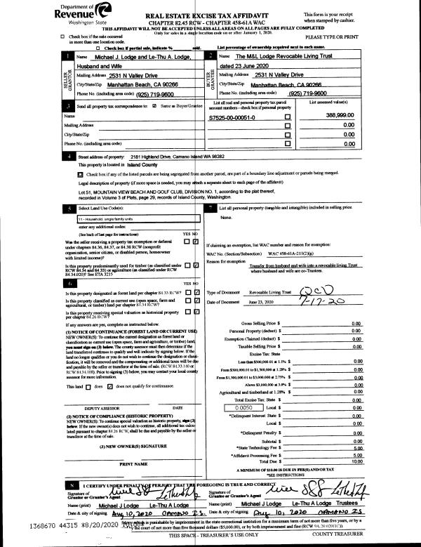 | Mailing Address: | AZIA BROWN 95 E MORRIS RD COUPEVILLE, WA 98239 | % Ownership: | 100.0000000000% |
