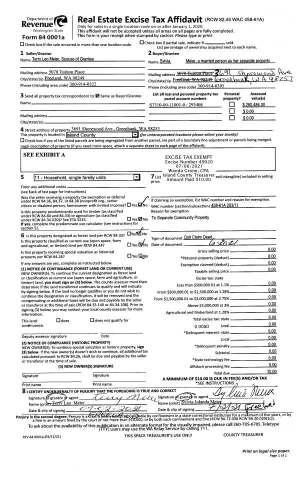 | 6 | 05/01/1983 | QCD | Quit Claim Deed | WILCOX, PAUL B | WILCOX, DOROTHY E | | | $0.00 | 31223 | 409320 |
