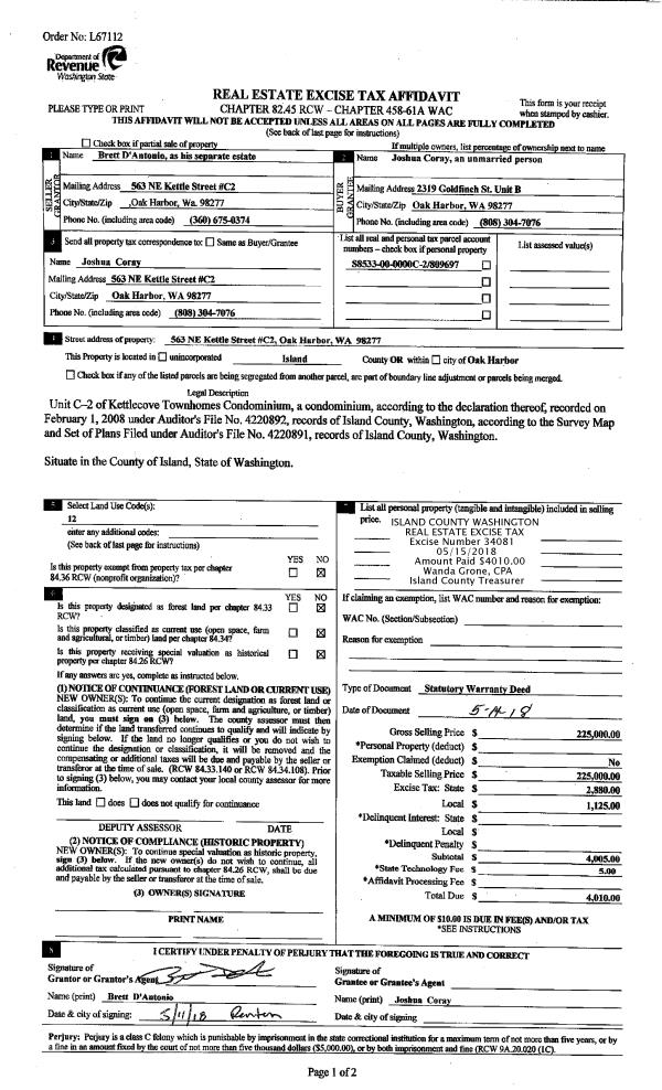 | 4 | 07/30/2018 | WD | Warranty Deed | QUINLAN, PATRICK A | HANKS, DONALD W | | | $385,000.00 | 35278 | 4449134 |