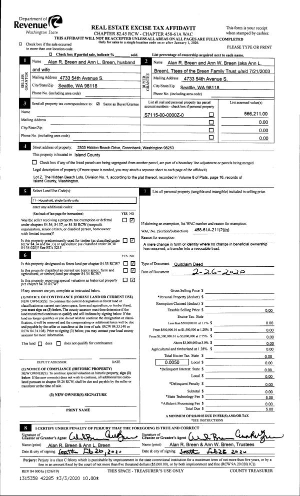 | Mailing Address: | 1529 GARDEN LN FREELAND, WA 98249-9684 | % Ownership: | 100.0000000000% |