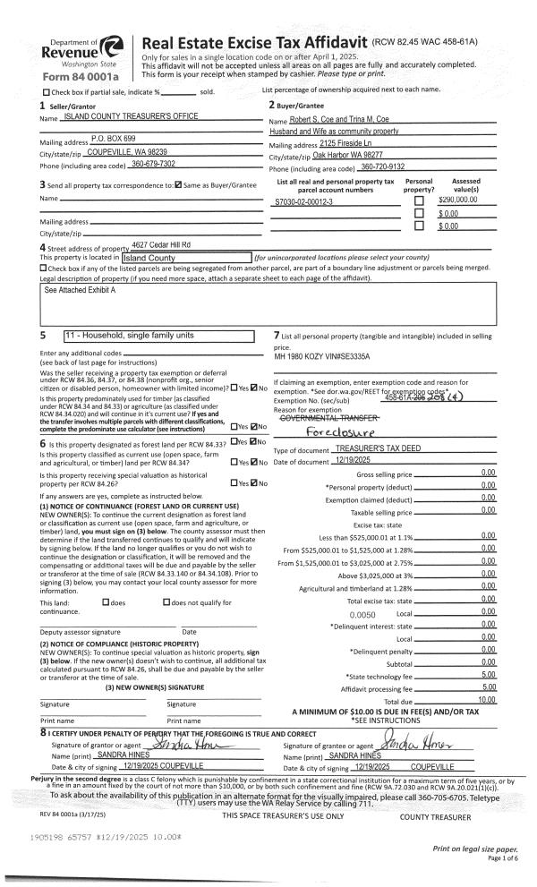 | Mailing Address: | 1516 GARDEN LN FREELAND, WA 98249-9684 | % Ownership: | 100.0000000000% |
