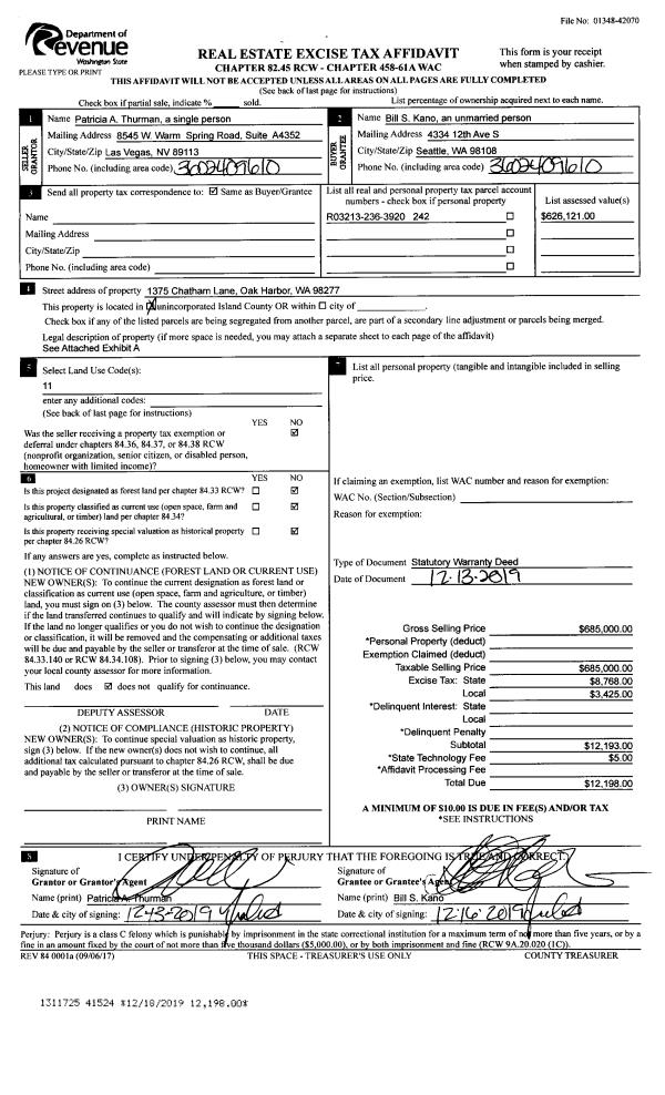 | Mailing Address: | KAREN ANDERSON 664 WINDMILL DR FREELAND, WA 98249 | % Ownership: | 100.0000000000% |