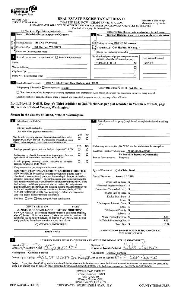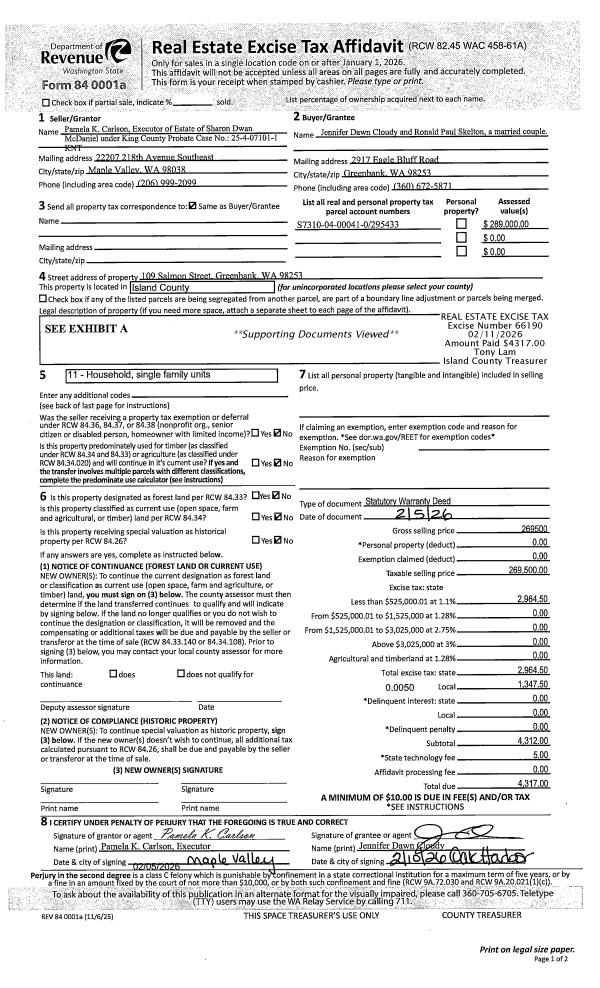 | Tax Area: | 710 - APPRAISER-S Whid Schl Dist, outside Langley, improved & 1 acre or less | Land Use Code | 11 |