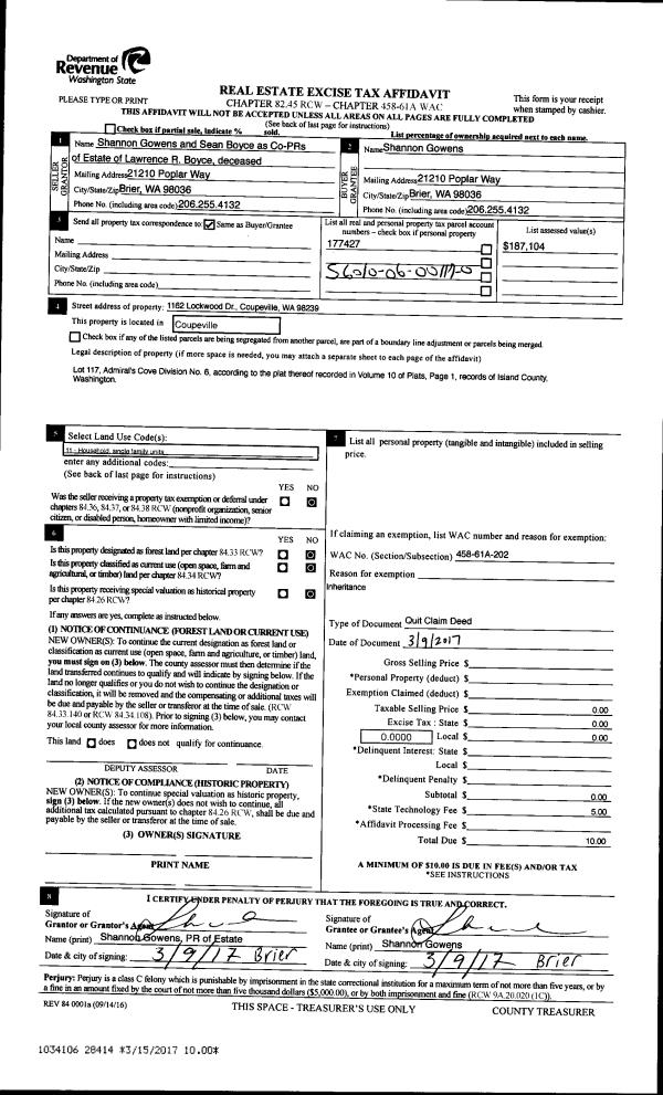 | 5 | 01/11/2017 | QCD | Quit Claim Deed | LAMBERT, LAWRENCE | LAMBERT, LAWRENCE | | | $0.00 | 28107 | 4417250 |