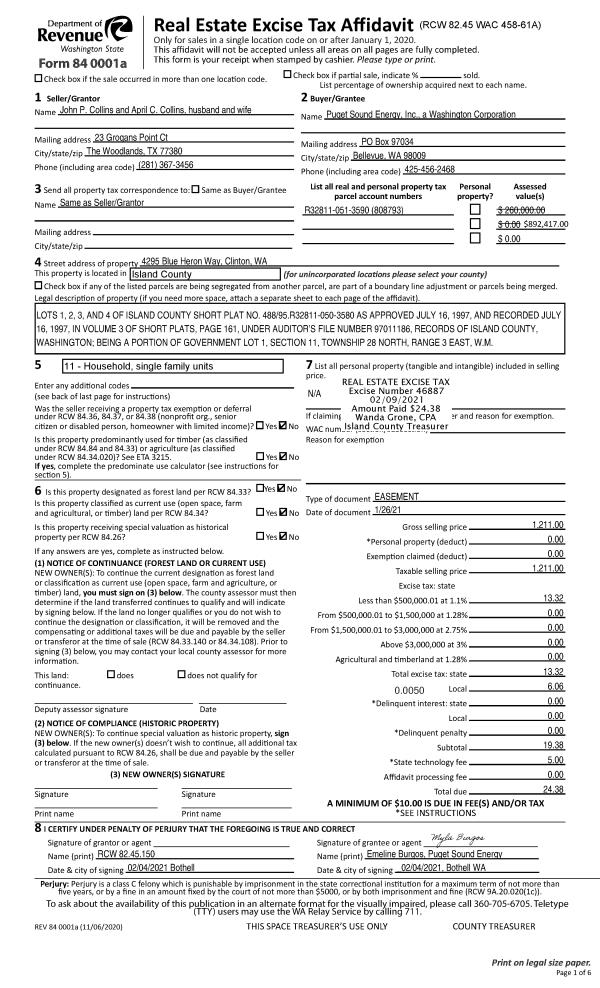 | Mailing Address: | NERISSA S FOSTER 4450 WOODLAND CIR OAK HARBOR, WA 98277 | % Ownership: | 100.0000000000% |