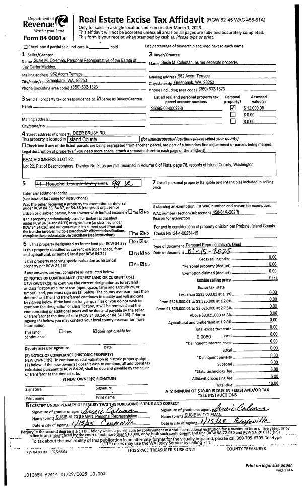 | Mailing Address: | 197 SW TERRY RD COUPEVILLE, WA 98239 | % Ownership: | 100.0000000000% |