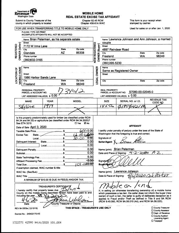 | 5 | 04/27/2007 | TRUSTEED | Trustee's Deed | STATE OF WASHINGTON, | WHIDBEY ISLAND BANK, | | | $0.00 | 71341 | 4200433 |