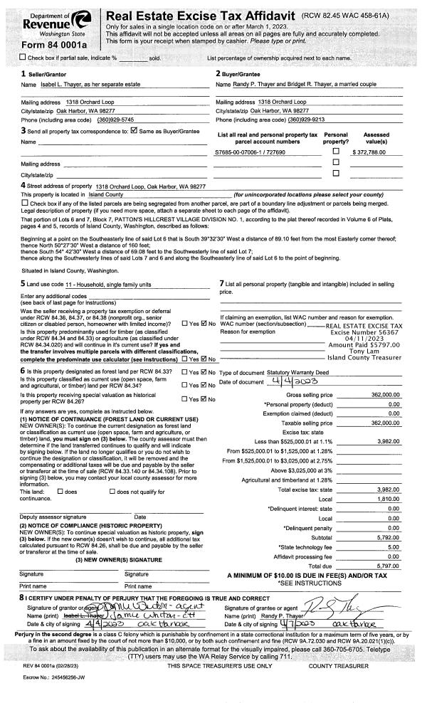 | Mailing Address: | LAURA J FROMME 3620 DUNDEE WAY OAK HARBOR, WA 98277 | % Ownership: | 100.0000000000% |