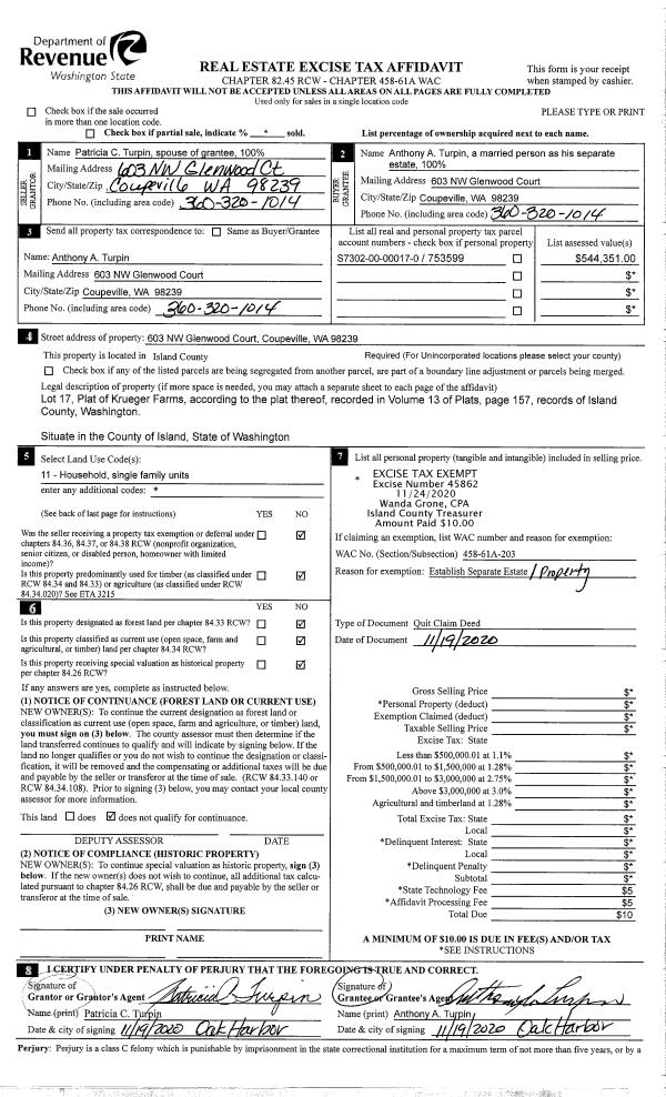 | Mailing Address: | 317 WHITEWEBS LN GREENBANK, WA 98253 | % Ownership: | 100.0000000000% |