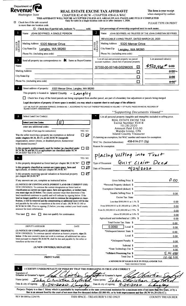 | 1 | 02/20/2020 | QCD | Quit Claim Deed | STRONG-ROBERTS, GEORGE | STRONG-ROBERTS TTEE, GEORGE | | | $0.00 | 43096 | 4487174 |