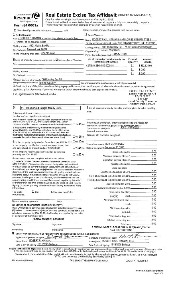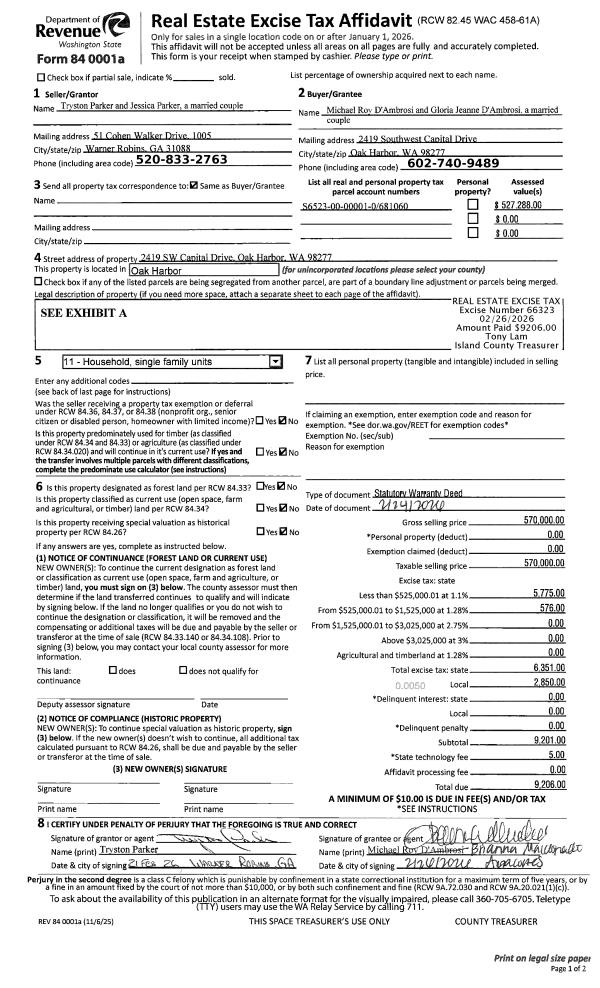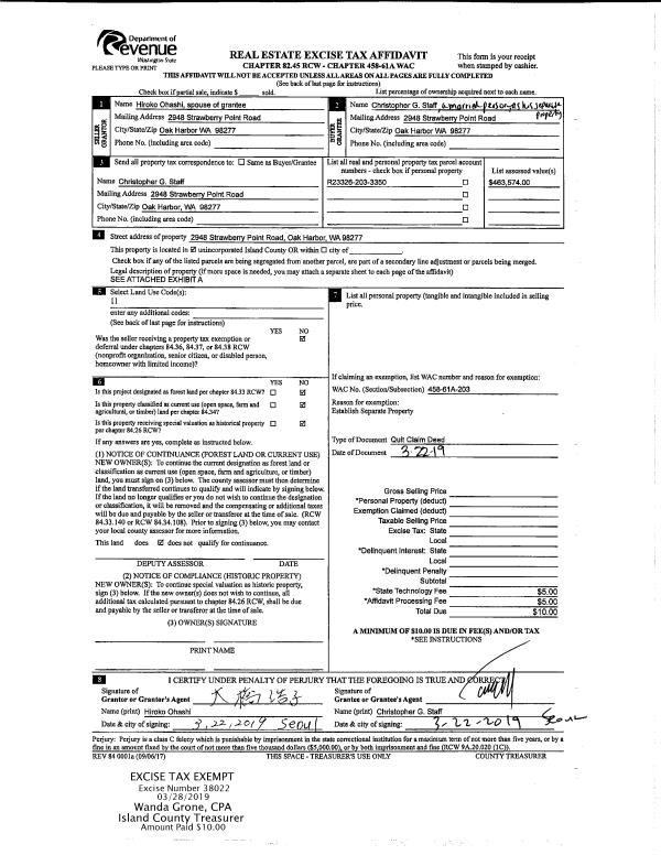 | Mailing Address: | 700 NW CROSBY AVE TRLR# 105 OAK HARBOR, WA 98277 | % Ownership: | 100.0000000000% |