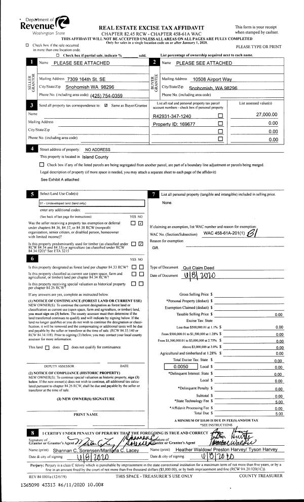 | Mailing Address: | 5005 E HARBOR RD FREELAND, WA 98249 | % Ownership: | 100.0000000000% |