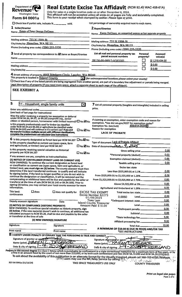 | 1 | 05/08/2024 | EZ | Easement | LAARMAN, SUSAN | PUGET SOUND ENERGY | | | $1,500.00 | 60179 | 4573037 |