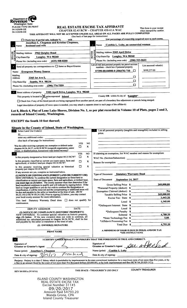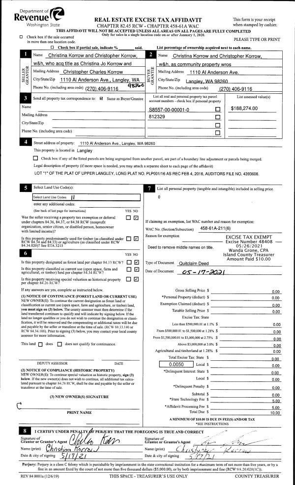 | Mailing Address: | ROSIE RAE BROUSE 5128 BAYVIEW RD LANGLEY, WA 98260 | % Ownership: | 100.0000000000% |