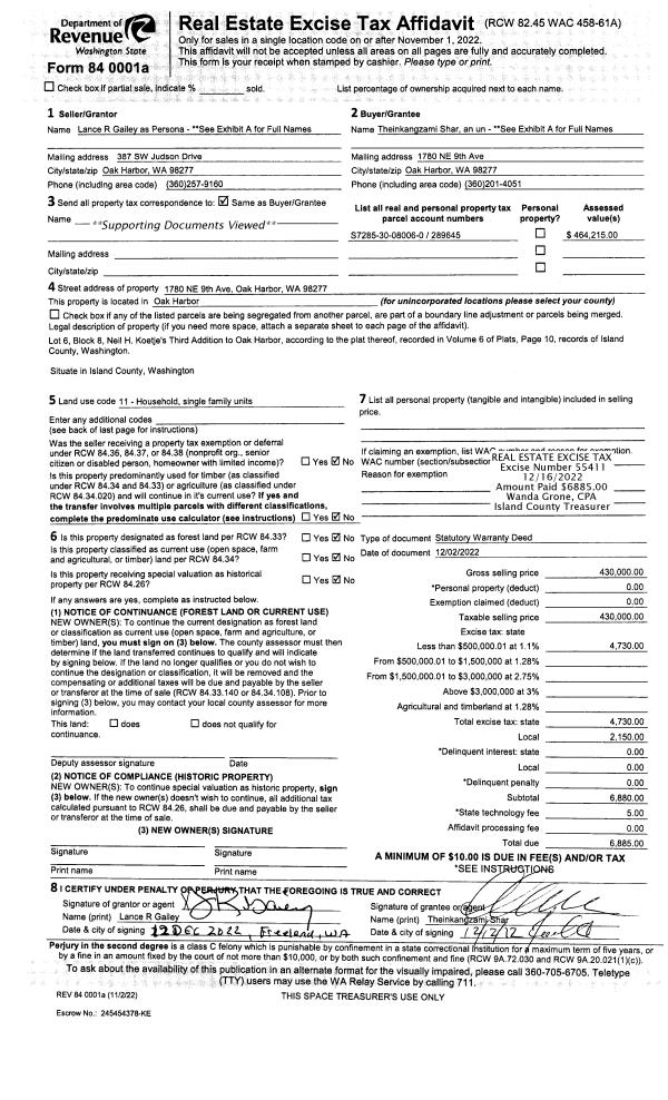 | Mailing Address: | 1845 SAKAI VILLAGE LOOP BAINBRIDGE ISLAND, WA 98110 | % Ownership: | 100.0000000000% |
