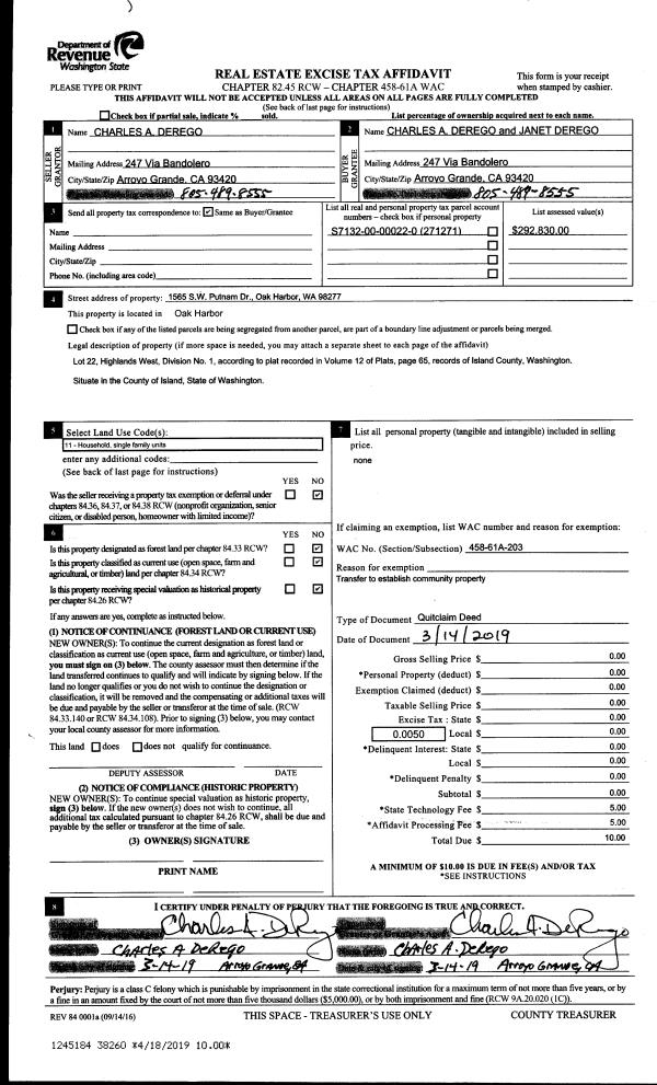| Mailing Address: | 5034 INGLEWOOD DR LANGLEY, WA 98260 | % Ownership: | 100.0000000000% |