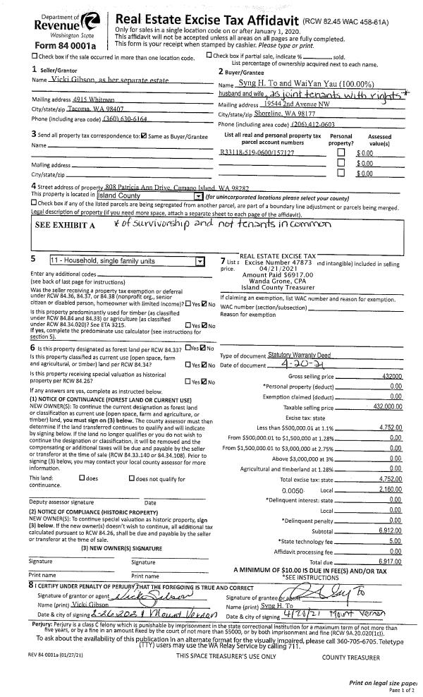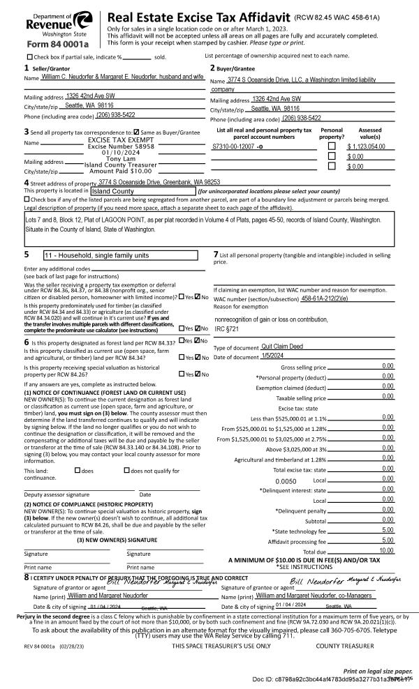 | Mailing Address: | 700 NW CROSBY AVE #15 OAK HARBOR, WA 98277 | % Ownership: | 100.0000000000% |