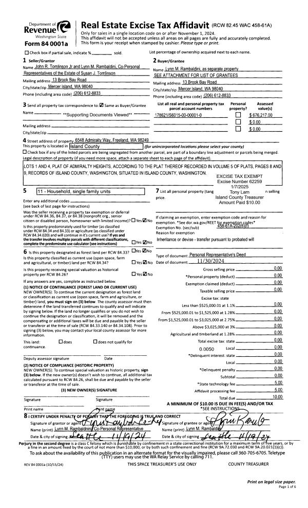 | NWHIDPRMT | P & R N Whidbey GEN | 0.2004466701 | $1 | $0 | $0.00 | | |