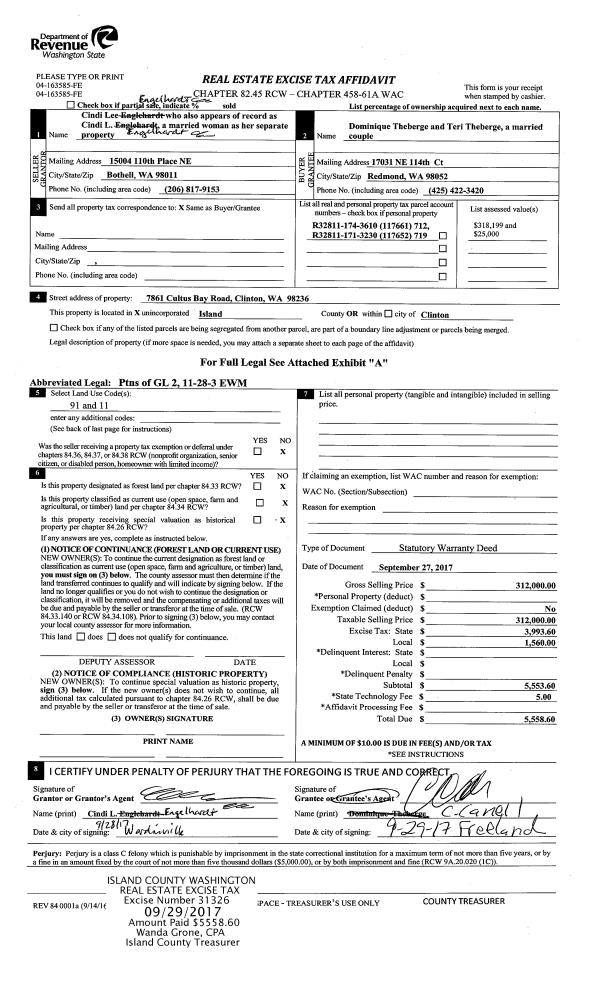 | 7 | 02/11/2003 | WD | Warranty Deed | WALLE, STEVEN MICHAEL | PROTECTION DIST 1, ISLAND CTY | | | $107,381.00 | 30605 | 4047754 |