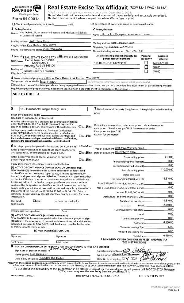 | Mailing Address: | 2276 WELLMAN PL OAK HARBOR, WA 98277 | % Ownership: | 100.0000000000% |
