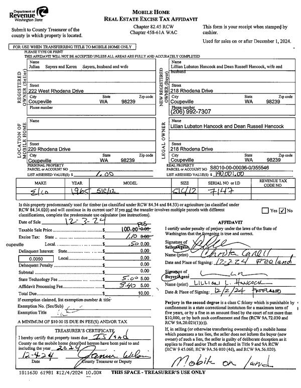 | Mailing Address: | CAROLINA C CACHO 2252 WEST WELLMAN PL OAK HARBOR, WA 98277 | % Ownership: | 100.0000000000% |
