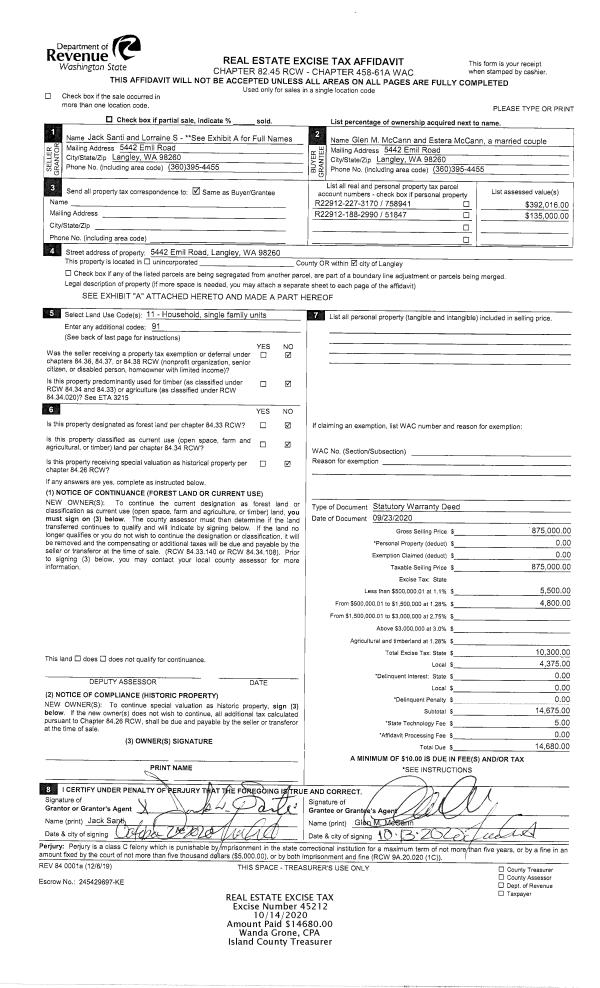 | Mailing Address: | BRENNA VERA 2270 WELLMAN PL OAK HARBOR, WA 98277 | % Ownership: | 100.0000000000% |
