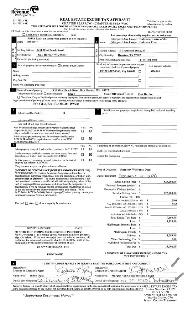 | Mailing Address: | 3572 OLD COUNTY RD GREENBANK, WA 98253 | % Ownership: | 100.0000000000% |