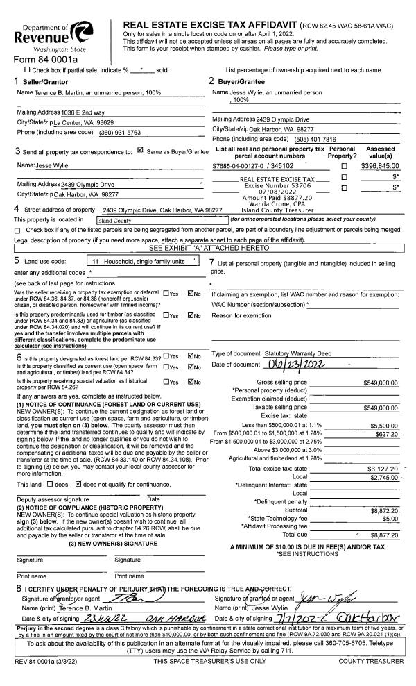 | Mailing Address: | 700 NW CROSBY AVE, #63 OAK HARBOR, WA 98277 | % Ownership: | 100.0000000000% |