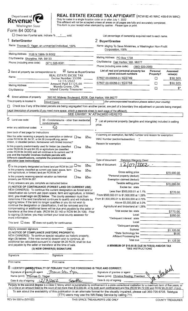 | Mailing Address: | 2920 HELLER RD TRLR 19 OAK HARBOR, WA 98277-9234 | % Ownership: | 100.0000000000% |