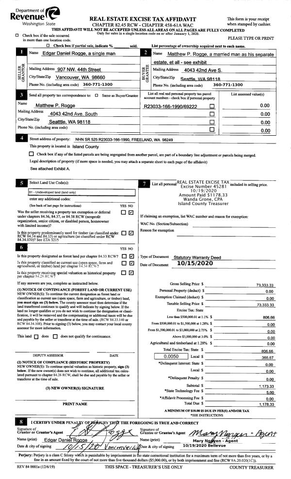 | Mailing Address: | LEVA B FAIRLEY 2021 LOWELL POINT RD CAMANO ISLAND, WA 98282-6379 | % Ownership: | 100.0000000000% |