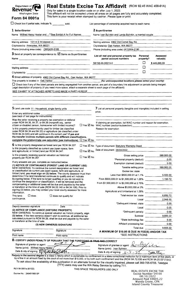 | Mailing Address: | 587 GREEN ISLAND WAY CAMANO ISLAND, WA 98282 | % Ownership: | 100.0000000000% |