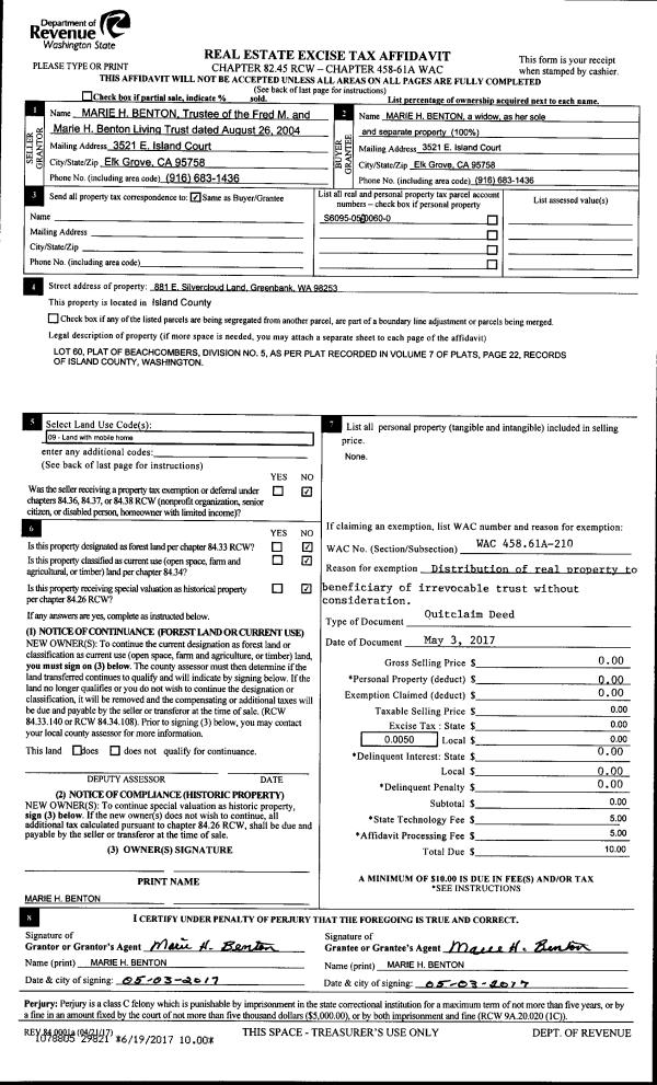 | 2 | 05/18/2015 | TOD | Transfer On Death Deed | HETT, IRVIN L & EVELYN | HETT, EVELYN | | | | 86132 | |