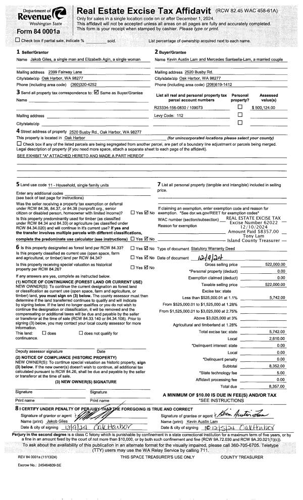 | Mailing Address: | 1320 N OAK HARBOR ST #160 OAK HARBOR, WA 98277 | % Ownership: | 100.0000000000% |