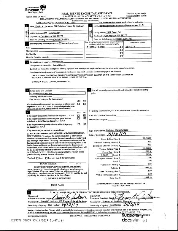 | NWHIDPRMT | P & R N Whidbey GEN | 0.2004466701 | $38,485 | $38,485 | $7.71 | | |