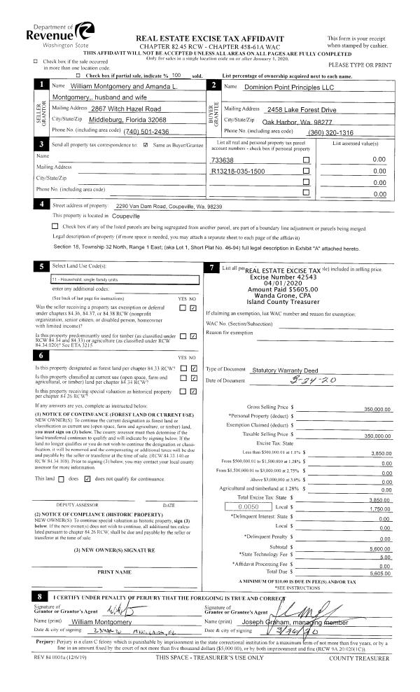 | Mailing Address: | NANCY J BIXBY 5154 SMUGGLERS COVE RD FREELAND, WA 98249 | % Ownership: | 100.0000000000% |