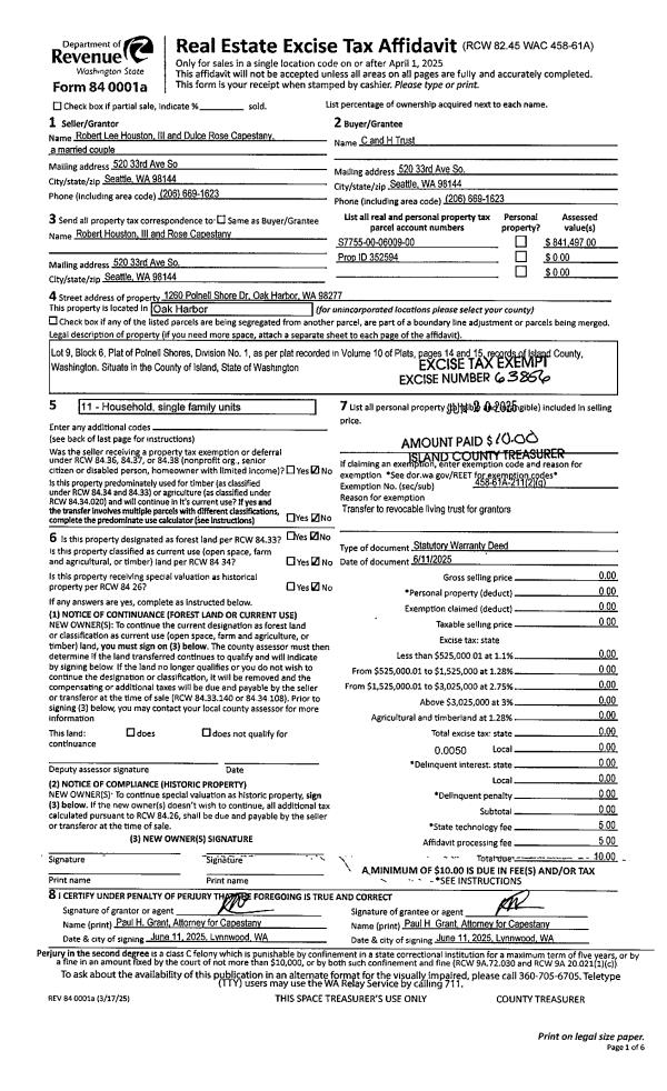 | 1 | 12/19/2008 | WD | Warranty Deed | WHIDBEY CAMANO LAND TRUST, | STAE OF WASHINGTON PARKS, | | | $54.00 | 83190 | 4241742 |