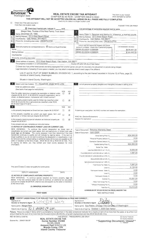 | SWHIDPRBD | P & R S Whidbey BOND | 0.0152817568 | $1,054,450 | $1,054,450 | $16.11 | | |