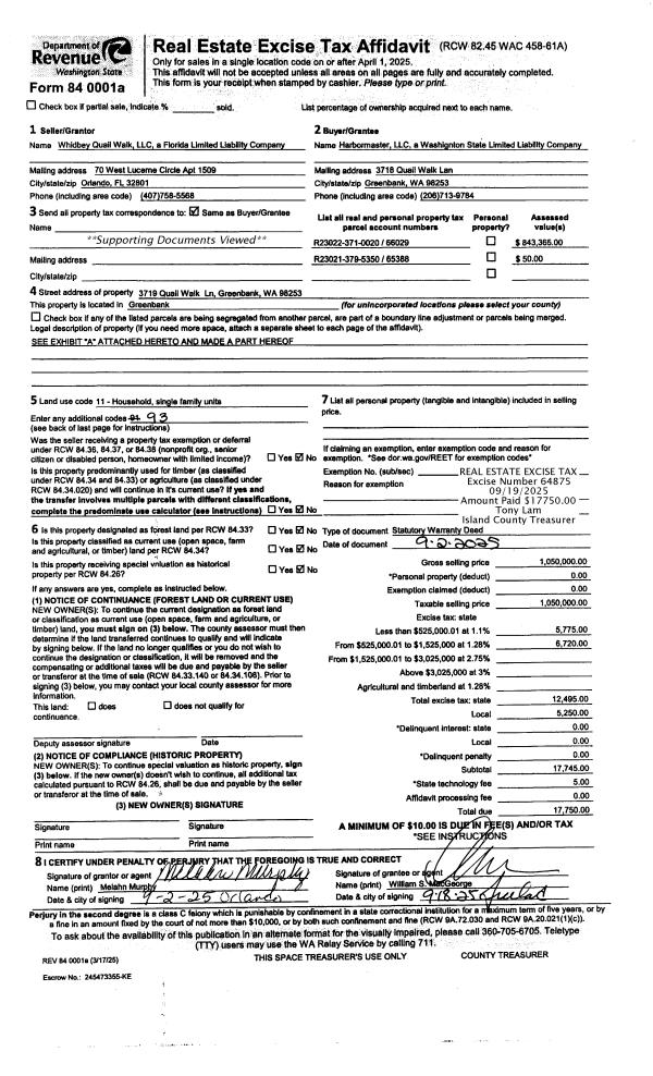 | Mailing Address: | JANICE CIPRIANO 986 TERRY HEIGHTS LN CAMANO ISLAND, WA 98282 | % Ownership: | 100.0000000000% |