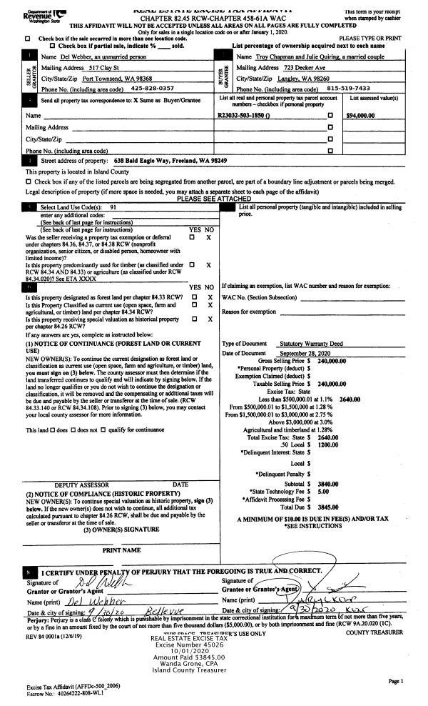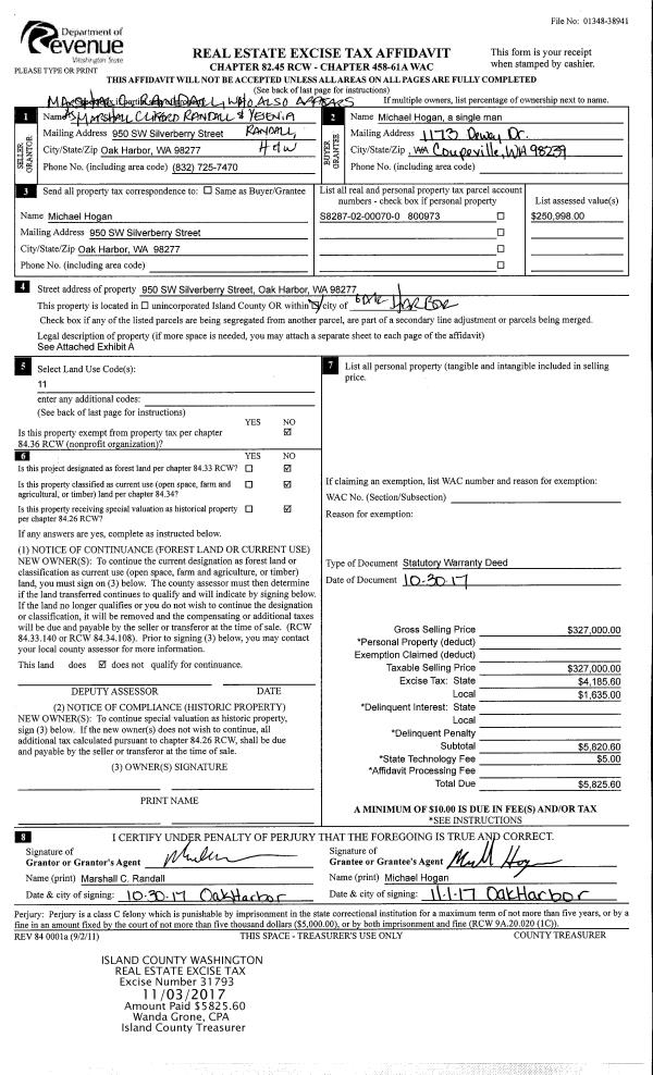 | Mailing Address: | 1320 N OAK HARBOR ST #12 OAK HARBOR, WA 98277 | % Ownership: | 100.0000000000% |