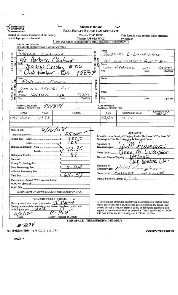 | Mailing Address: | 700 NW CROSBY AVE #56 OAK HARBOR, WA 98277 | % Ownership: | 100.0000000000% |