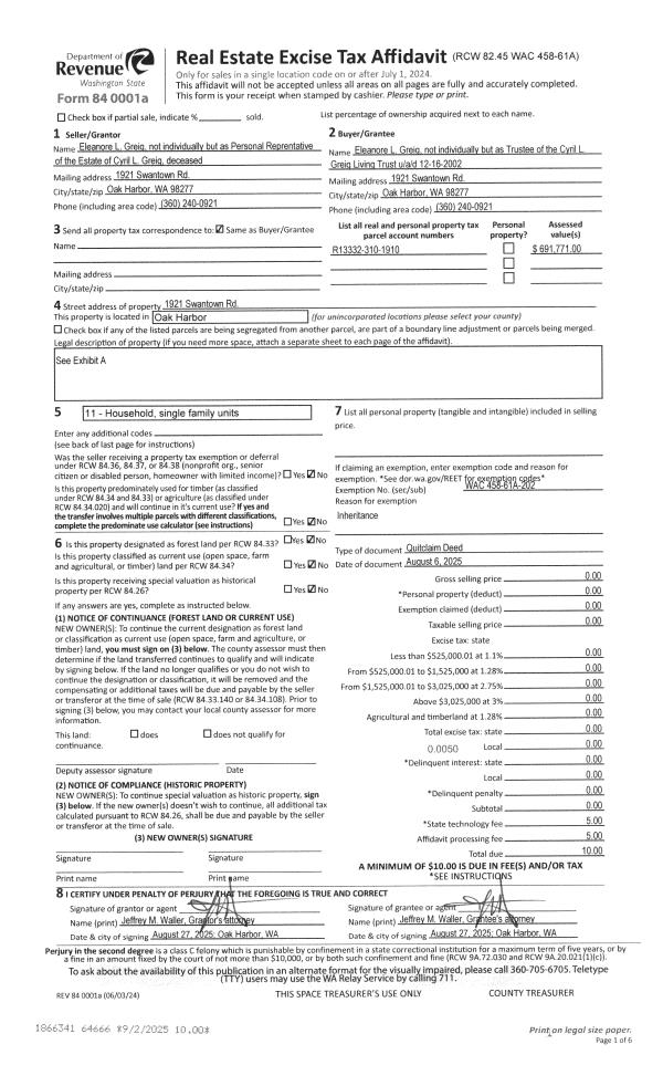 | Mailing Address: | 185 RHODENA DR COUPEVILLE, WA 98239-3911 | % Ownership: | 100.0000000000% |